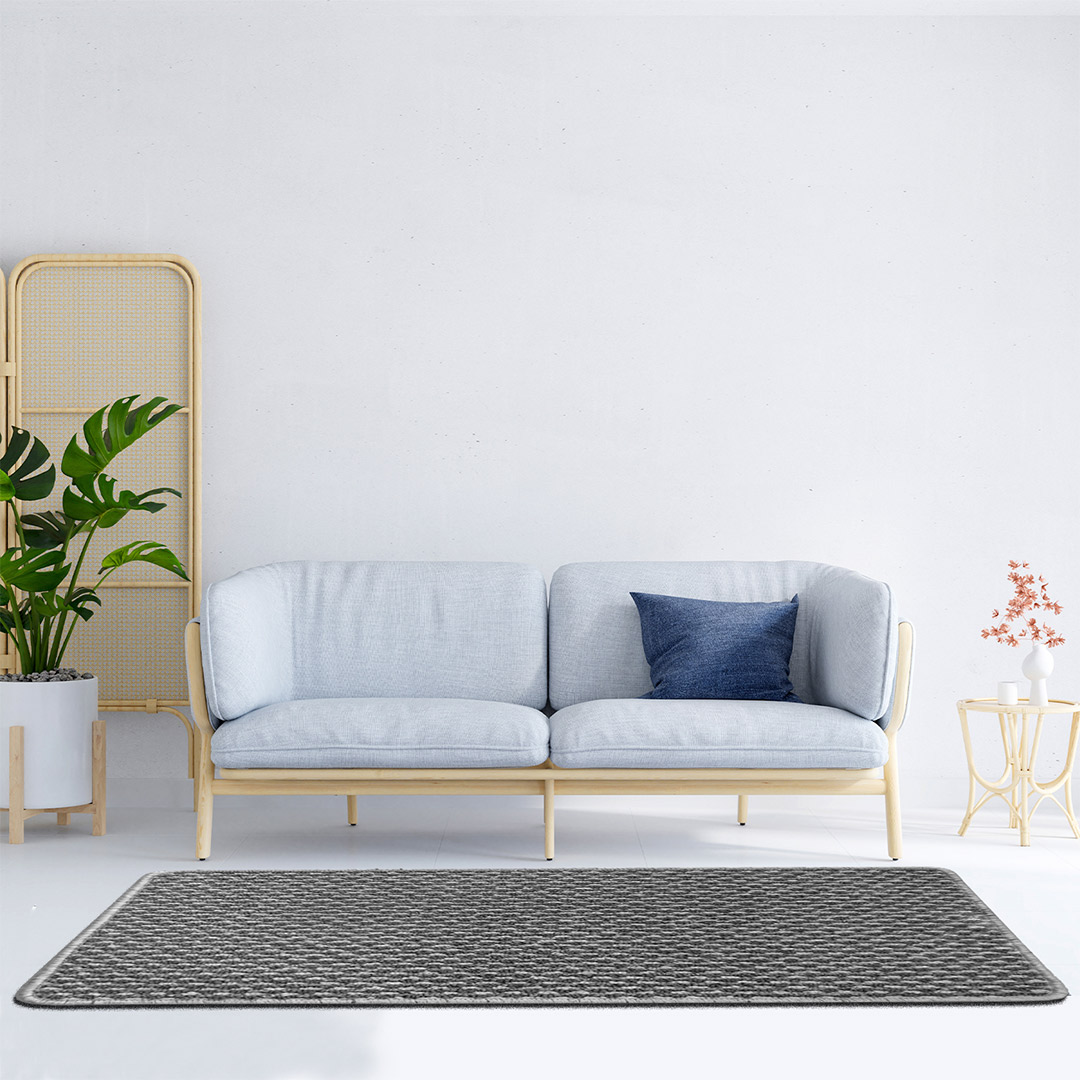 Tapete decorativo en tejido argollado, 100% Polipropileno, con base antideslizante EcoGrip, respetuoso con el medio ambiente, perfecto para usar como; pie de cama, halles, habitaciones y estudios